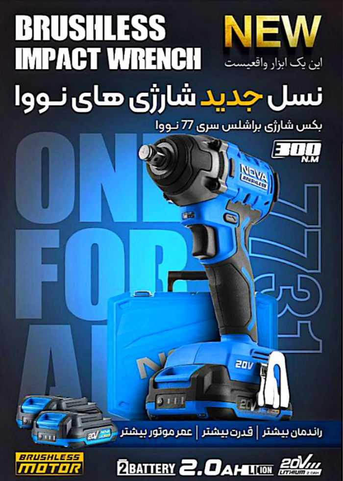 بکس شارژی نووا مدل 7731 ۲۰ ولت براشلس ضربهای سه سرعته