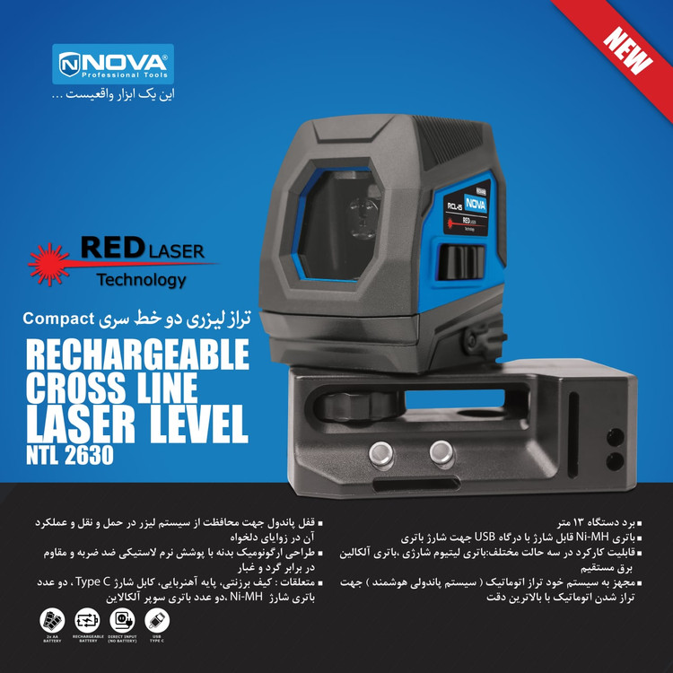 تراز لیزری دو خط شارژی ۲۶۳۰ نوا